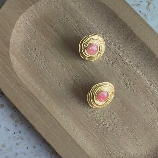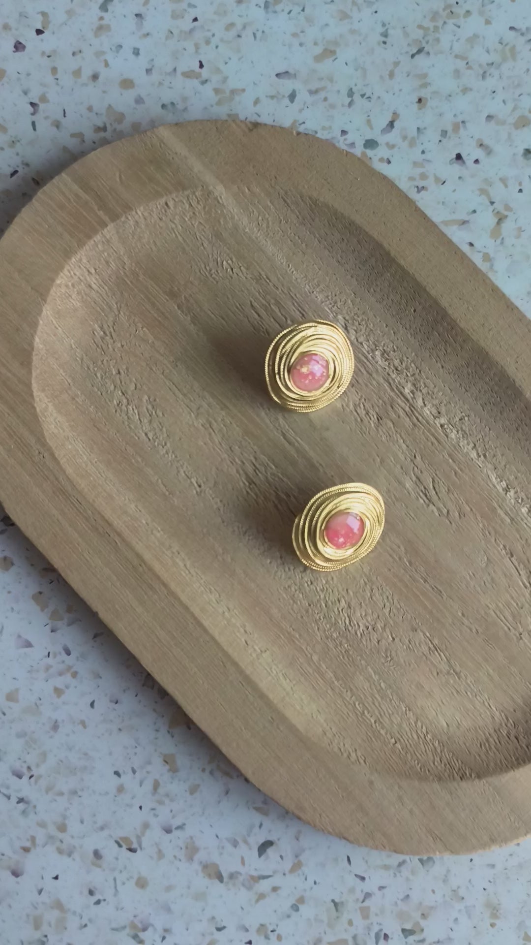 Handgemaakte* lichtgewicht oorbellen van polymeerklei met epoxy coating. De stekers zijn gemaakt van 18k verguld roestvrijstaal.