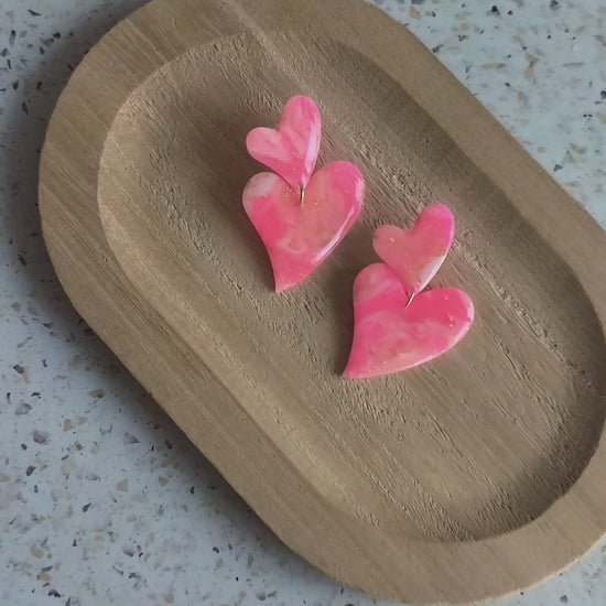Handgemaakte* lichtgewicht oorbellen van polymeerklei met epoxy coating. De stekers zijn gemaakt van 24k verguld roestvrijstaal.