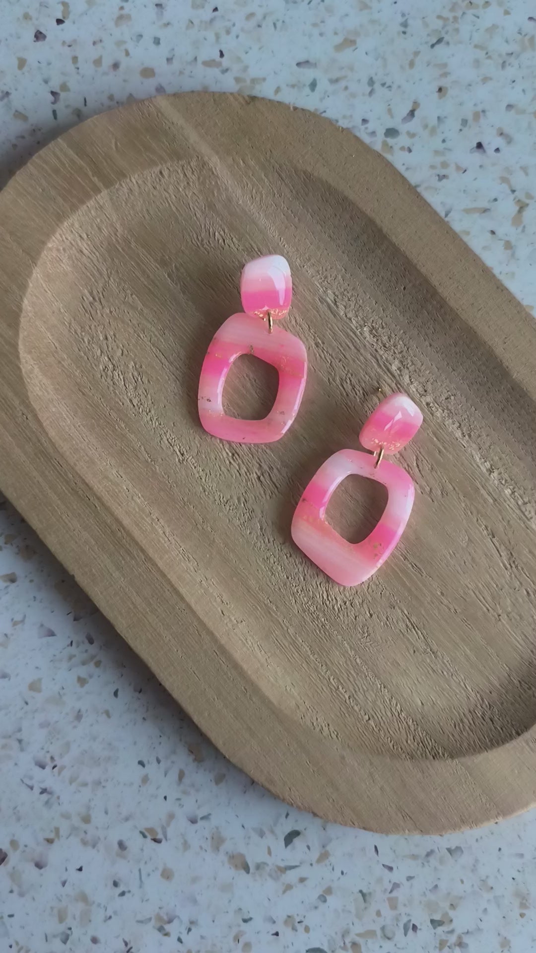 Handgemaakte* lichtgewicht oorbellen van polymeerklei met epoxy coating. De stekers zijn gemaakt van 24k verguld roestvrijstaal.