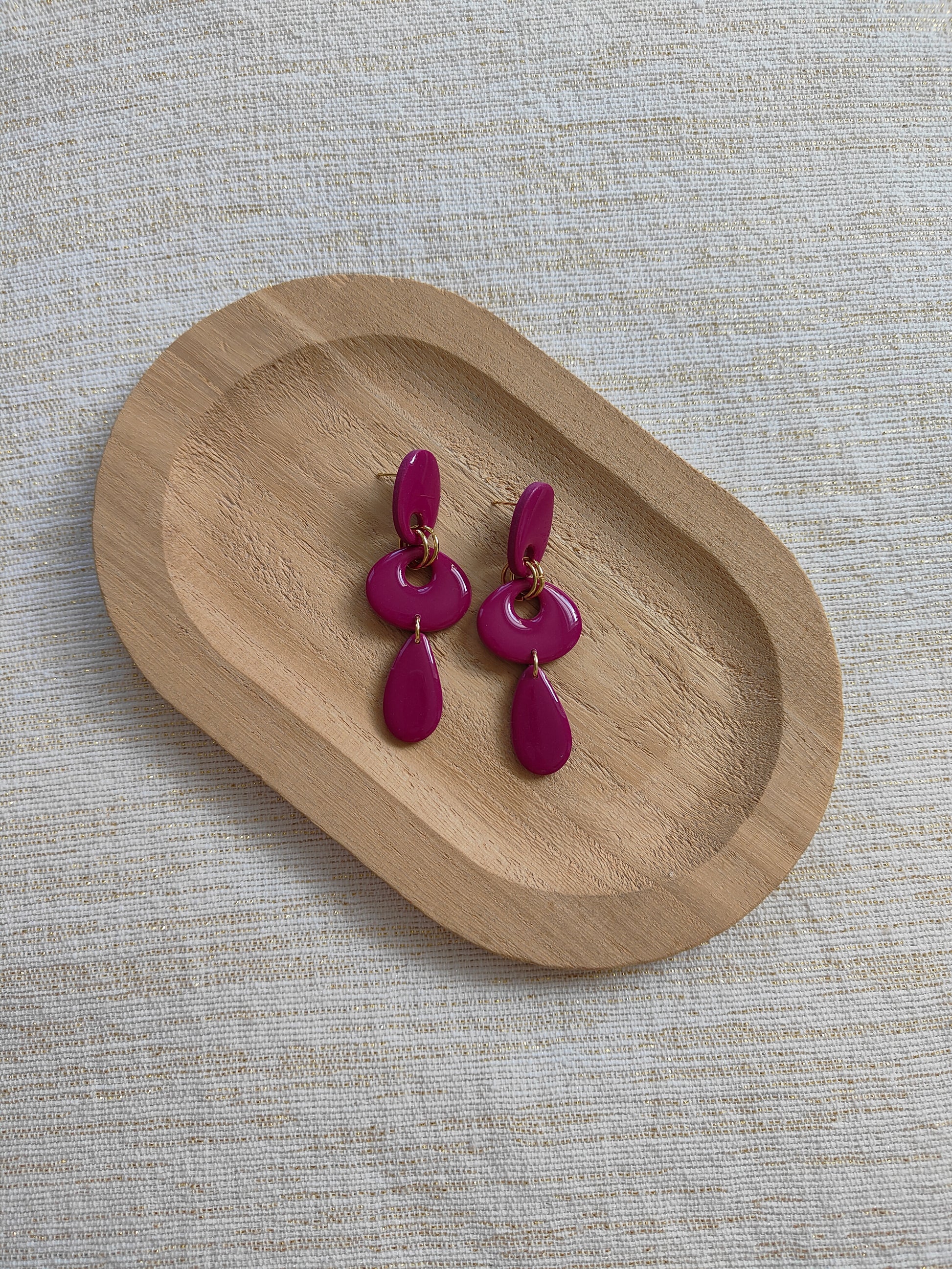 Handgemaakte lichtgewicht oorbellen van polymeerklei met epoxy coating. De stekers zijn gemaakt van 24k verguld roestvrijstaal.
