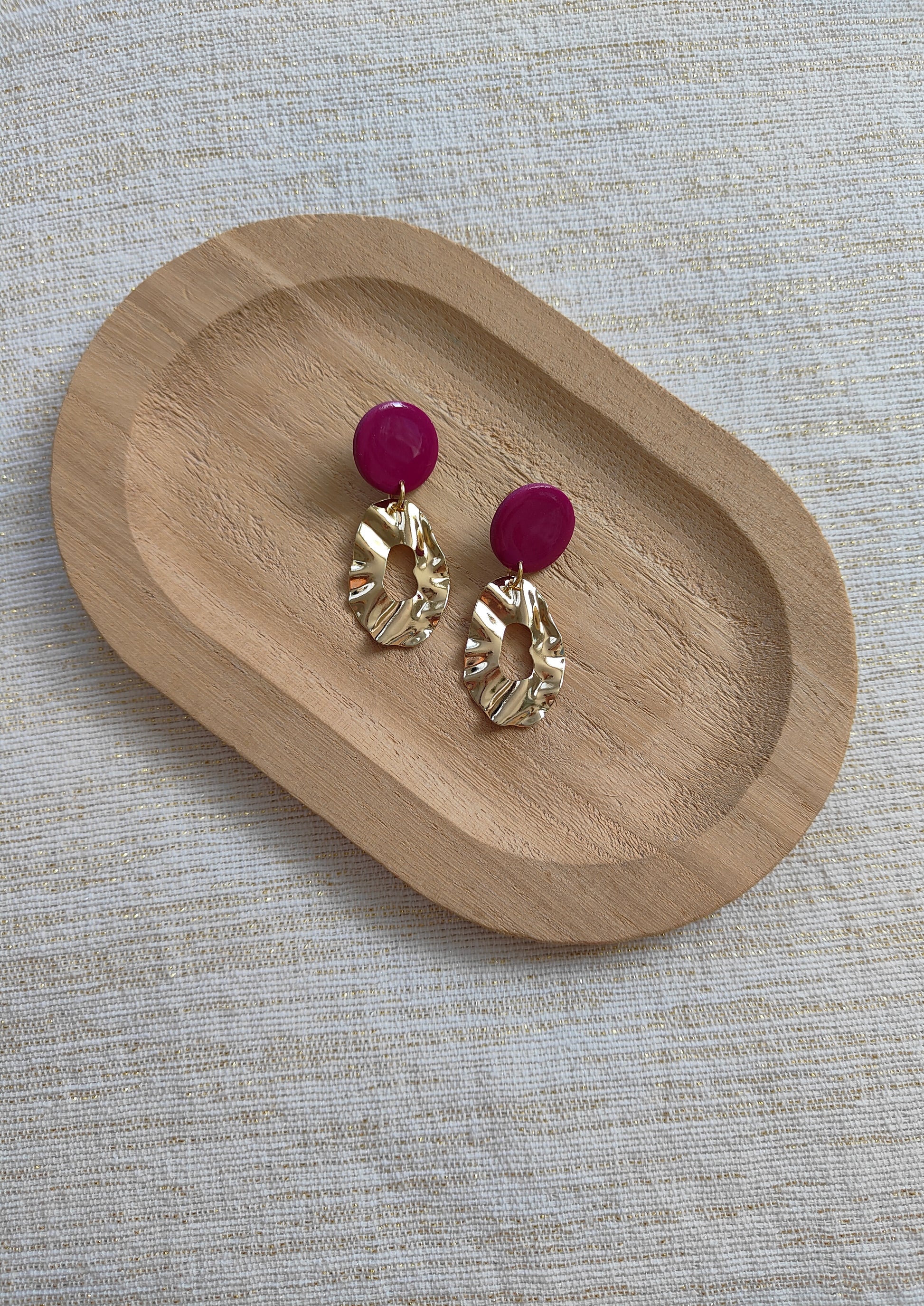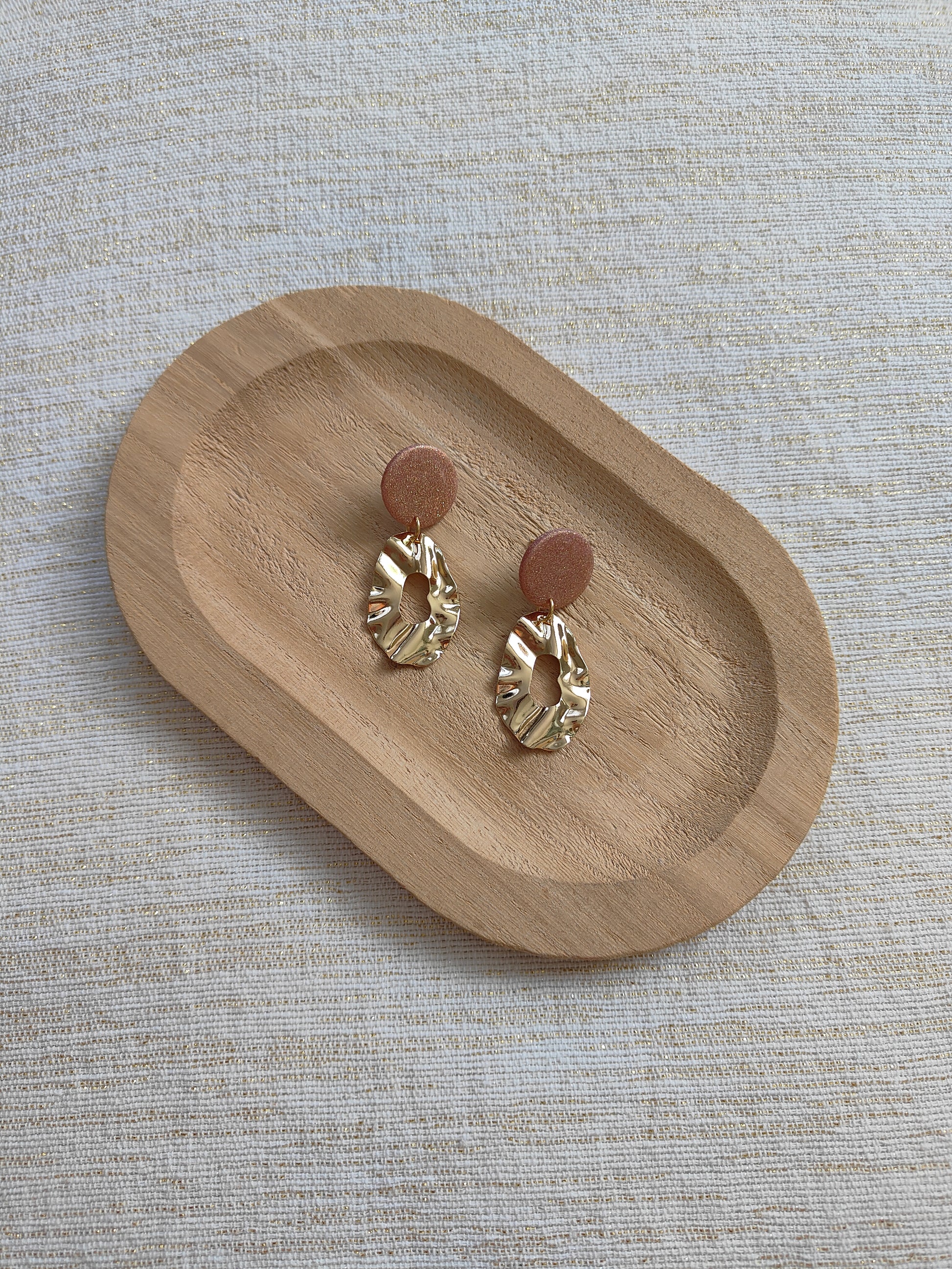 Handgemaakte lichtgewicht oorbellen van polymeerklei met epoxy coating. De stekers zijn gemaakt van 24k verguld roestvrijstaal.
