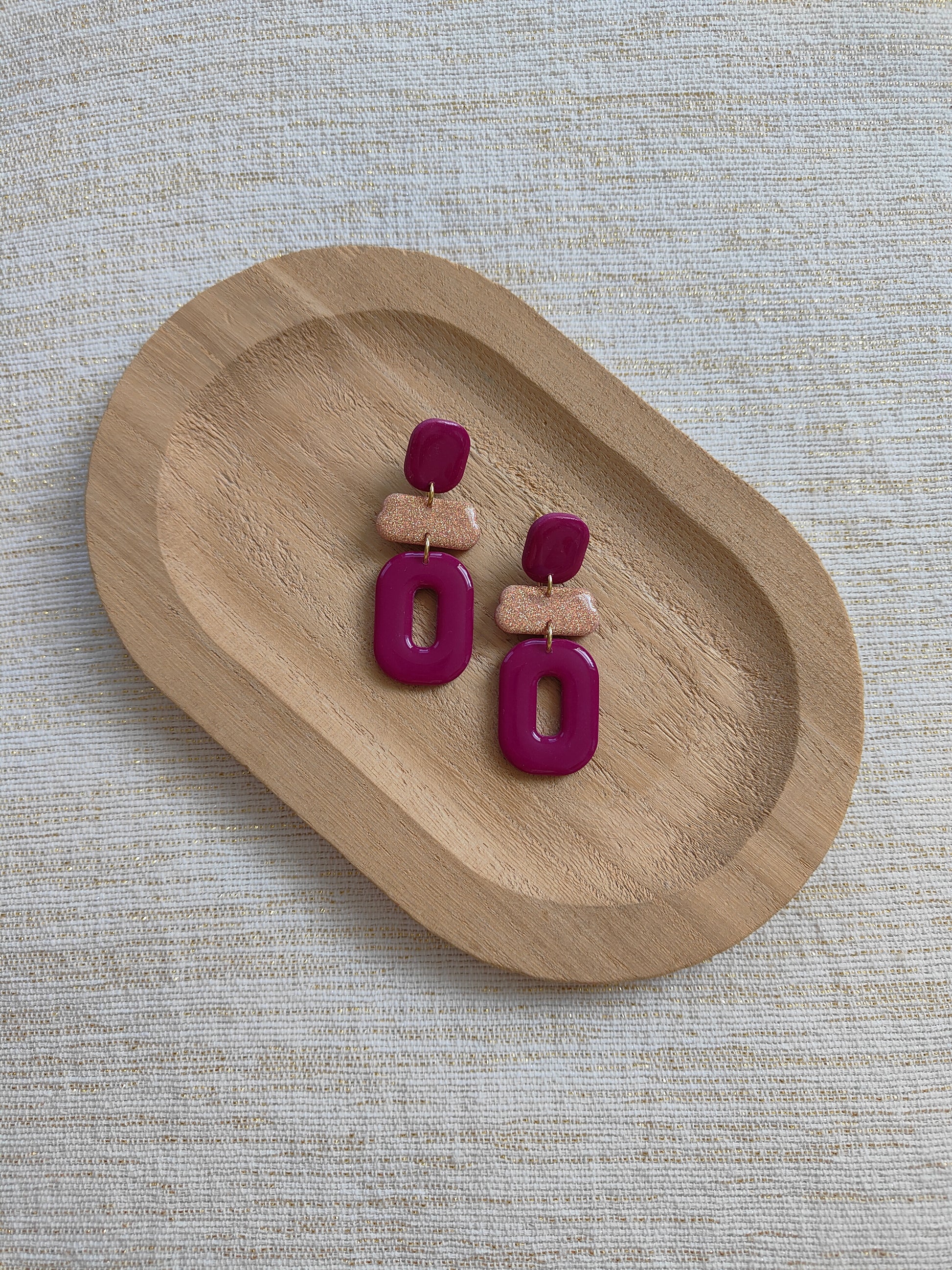 Handgemaakte lichtgewicht oorbellen van polymeerklei met epoxy coating. De stekers zijn gemaakt van 24k verguld roestvrijstaal.